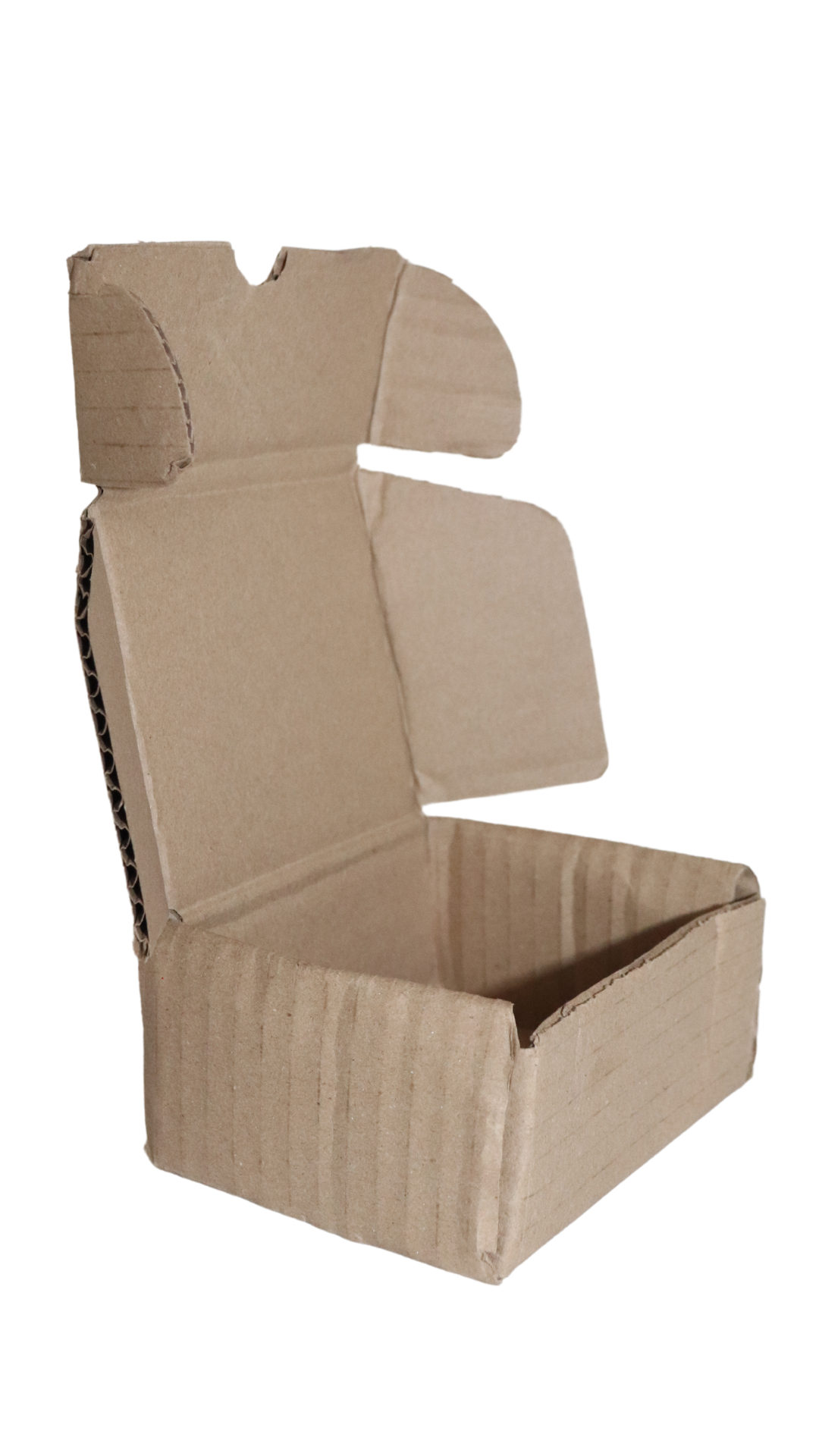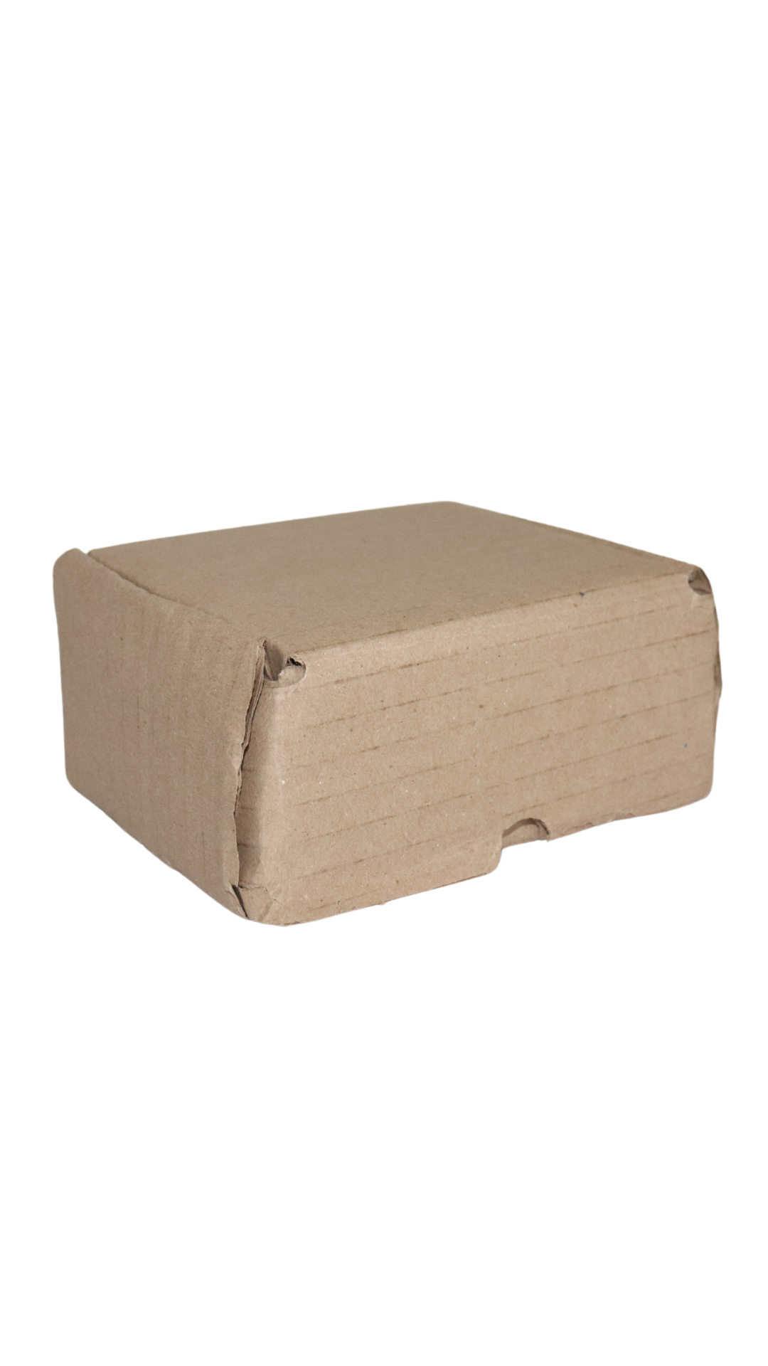 Caja de 4.5 de alto x 9.8de largo x 9,2cm de ancho de cartón corrugado de 5 milímetros.